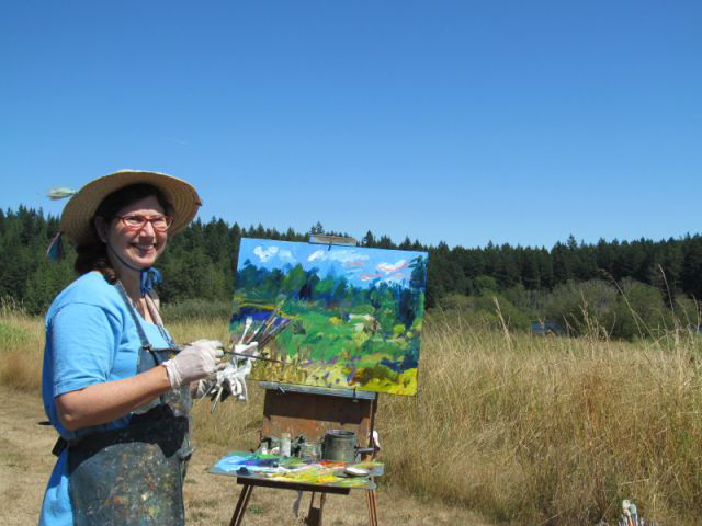 Me, Andrea in front of my painting, Rite of Spring: Firelight Dance.